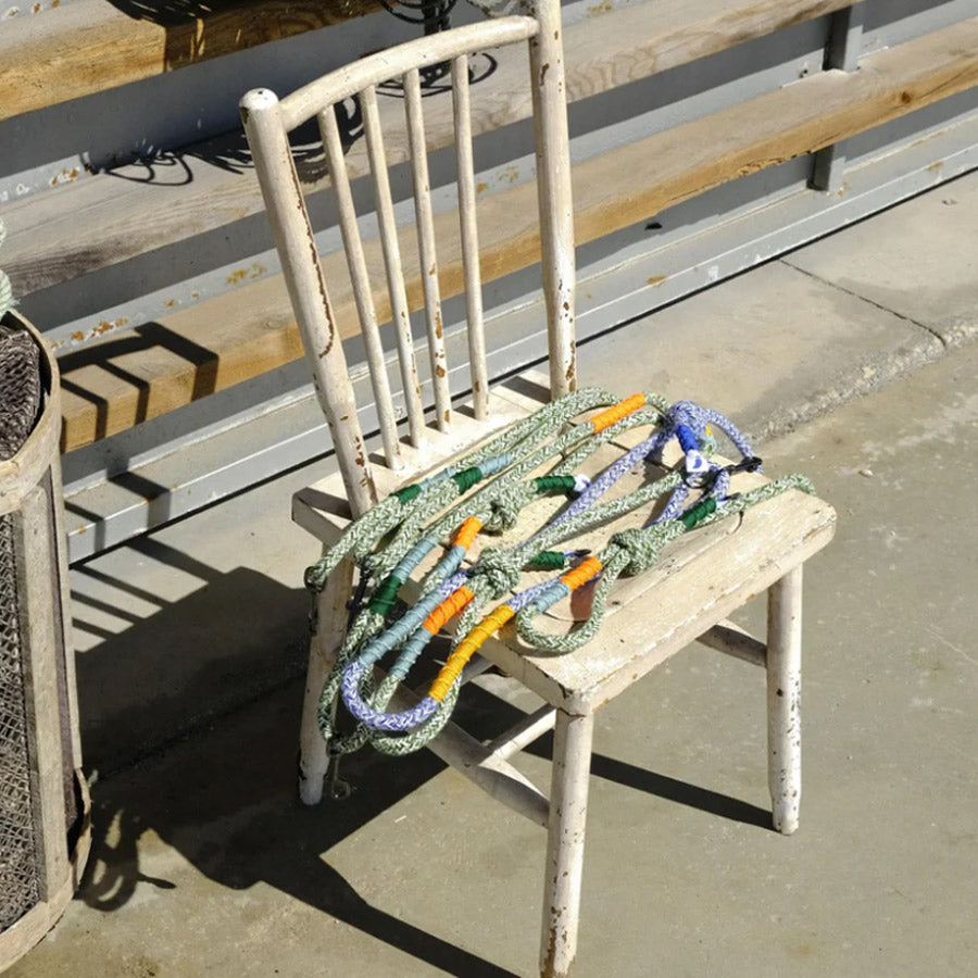 This 2m free-hand leash has been entirely handmade by Redeiras Artesás de Corme, a group of women who work with fishing nets in one of the most emblematic fishing ports in the northwest of Galicia, our region. The redeiras have worked with materials traditionally linked to fishing gear and produced in Spain.