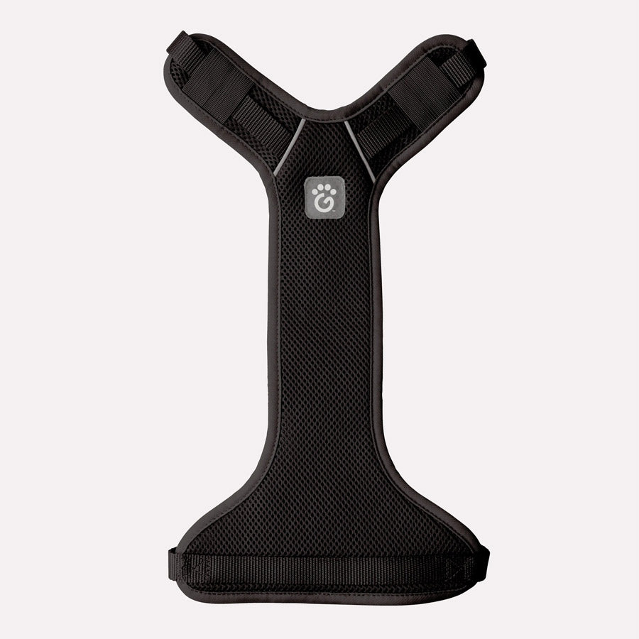 The GF PET® Dog Travel Harness is a non-choking harness that is perfect for securing your dog during car rides or going on hikes. Lightweight and durable with breathable mesh for extra comfort. Adjustable straps, strong back-loop and welded d-ring to attach to seat belt tether. Reflective piping for added safety. Grab a GF PET® seat belt tether too for complete travel comfort and safety!