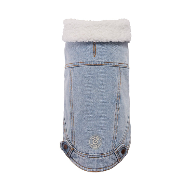 The GF PET® Elasto-Fit® Northside Denim Jacket takes on a new light wash look with its' contrast Sherpa Collar bringing out that Northern vibe with a vintage touch. Distressed light wash denim is complemented by snuggly popcorn sherpa inside and out, and feels even better over time with natural wear. Contrast stitching and quality copper-colored button snaps complete the look. Just as perfect for bad-ass moments as for laid back chillin’ in the hood. Super adjustable with patented Elasto-Fit® technology. Country or city, show them who’s boss!!