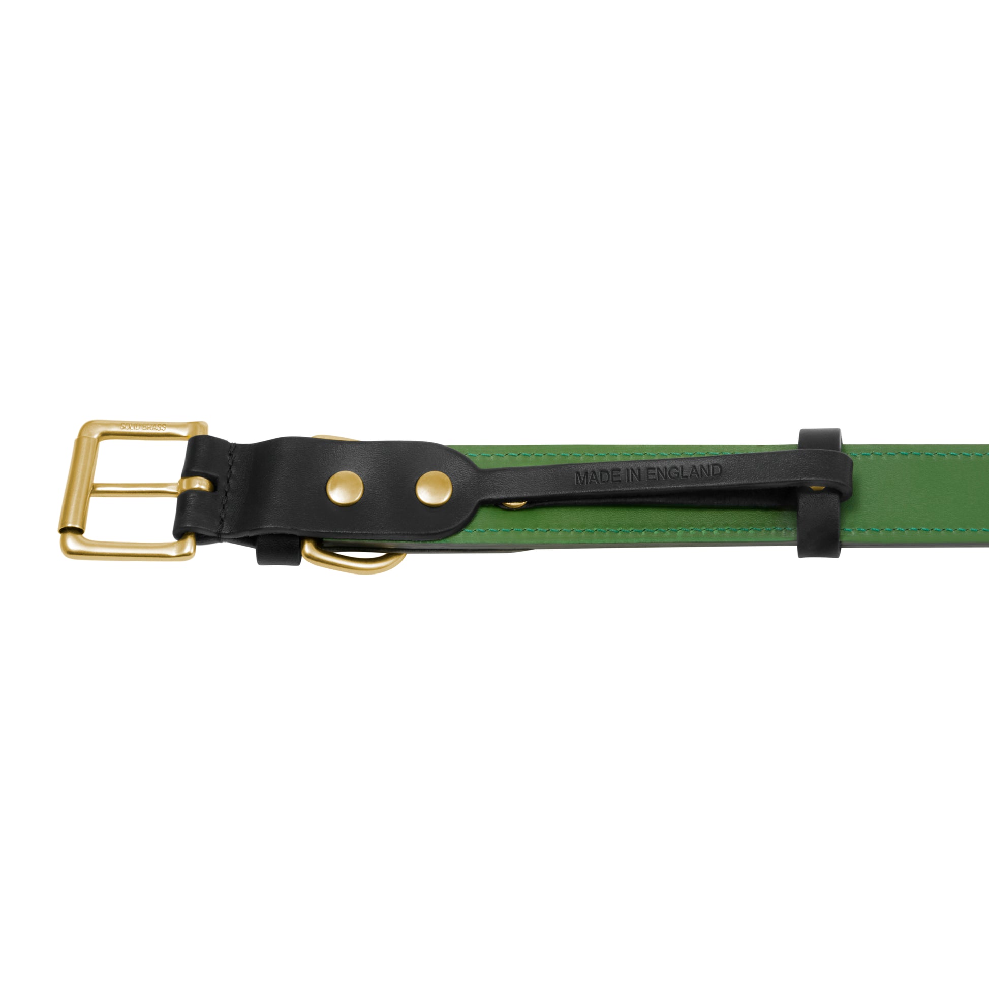 Other details that lift it out of the ordinary include burnished brass rivets, solid brass fittings lacquered to keep their lustre and an extra loop to keep the collar tip lying flat, the perfect finishing touch for your dapper dog.