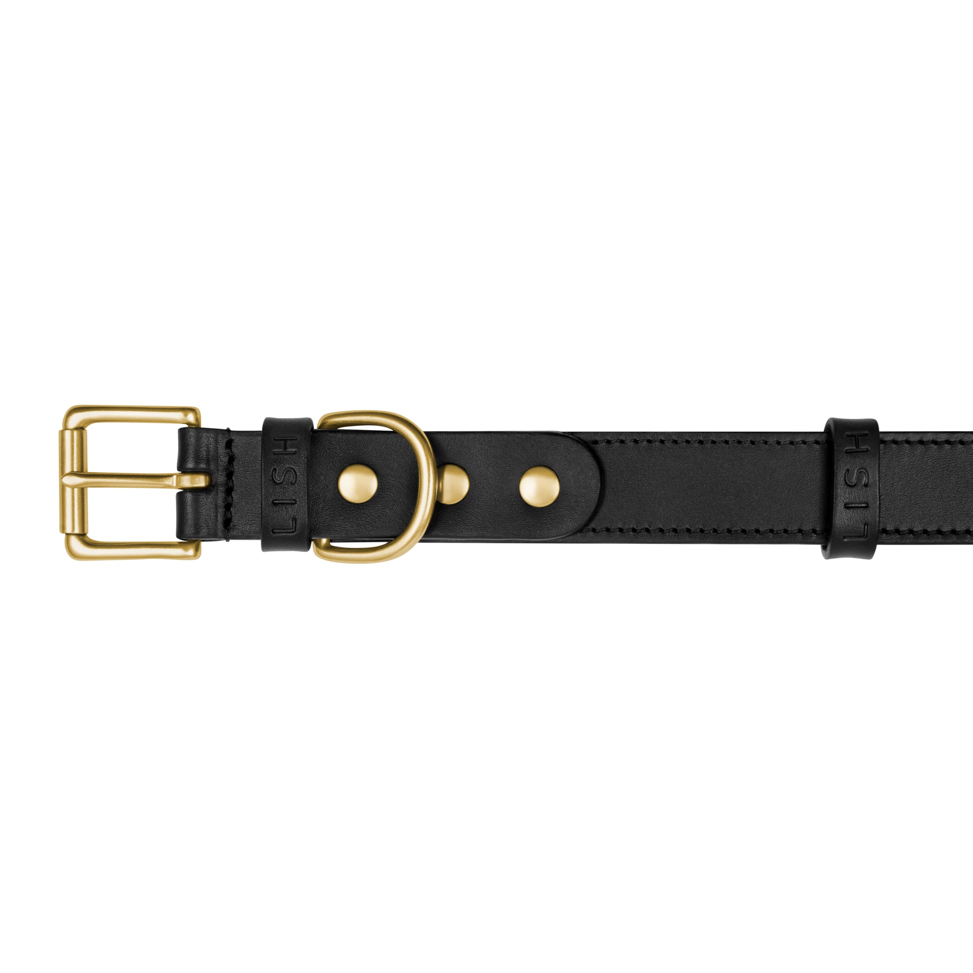 Hold the Spencer Truffle Black Luxury Leather Designer dog collar in your hand and feel how it’s at once both soft and strong. Imagine how gentle it will be on your dog’s neck. Look at the hand-crafted stitching and admire the hand-stamped imprint of the prestigious LISH logo – the hallmark of quality and luxury.